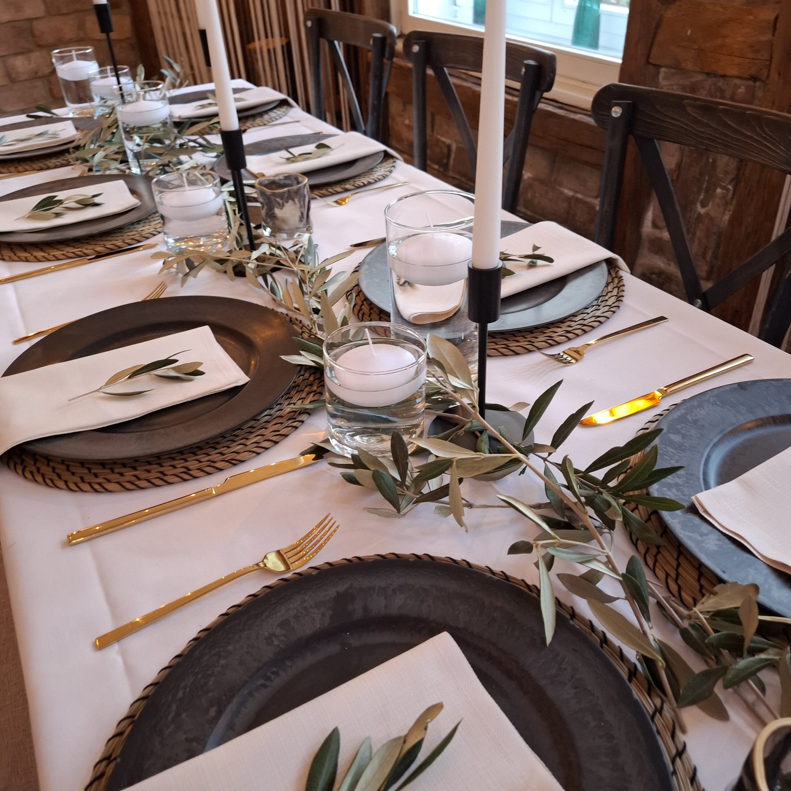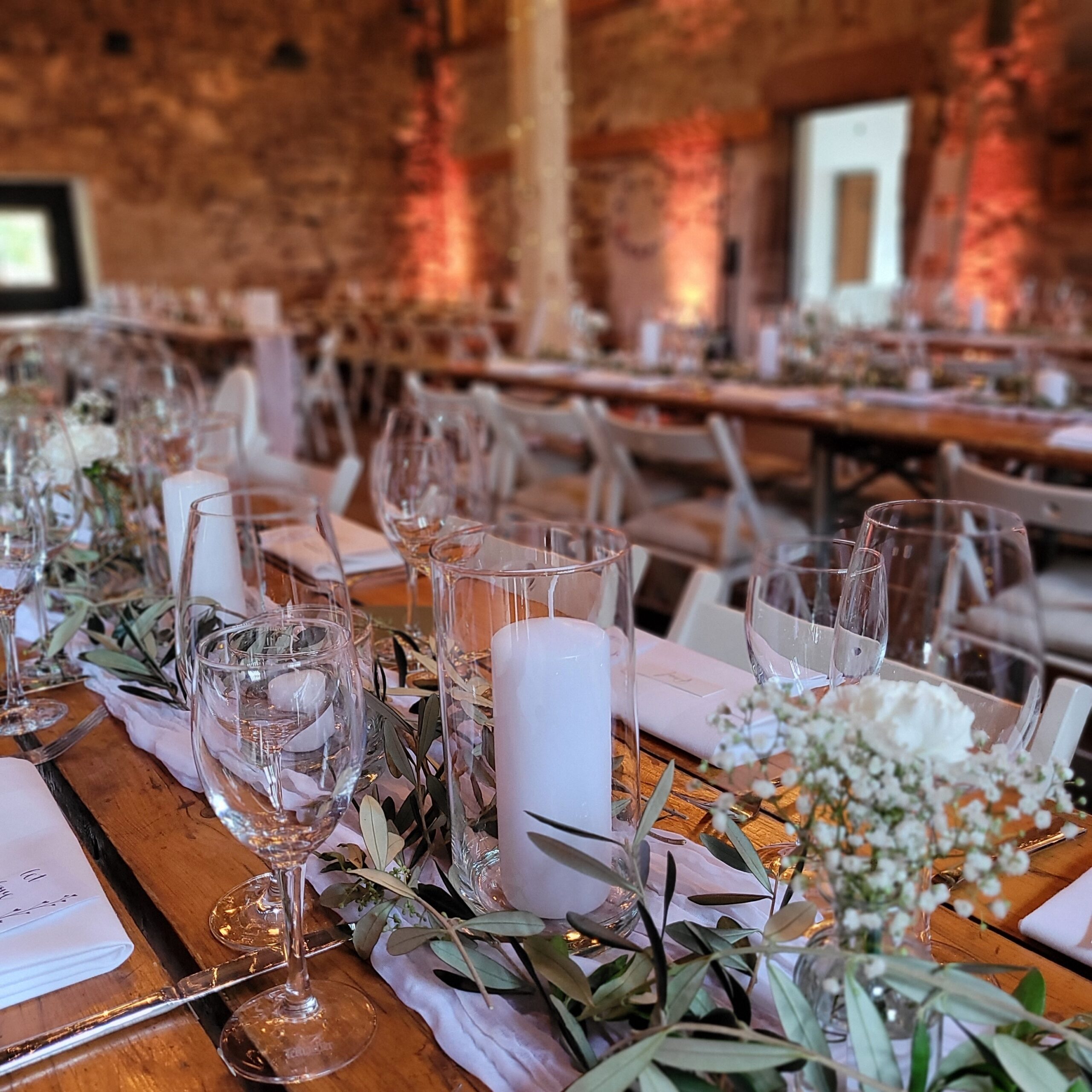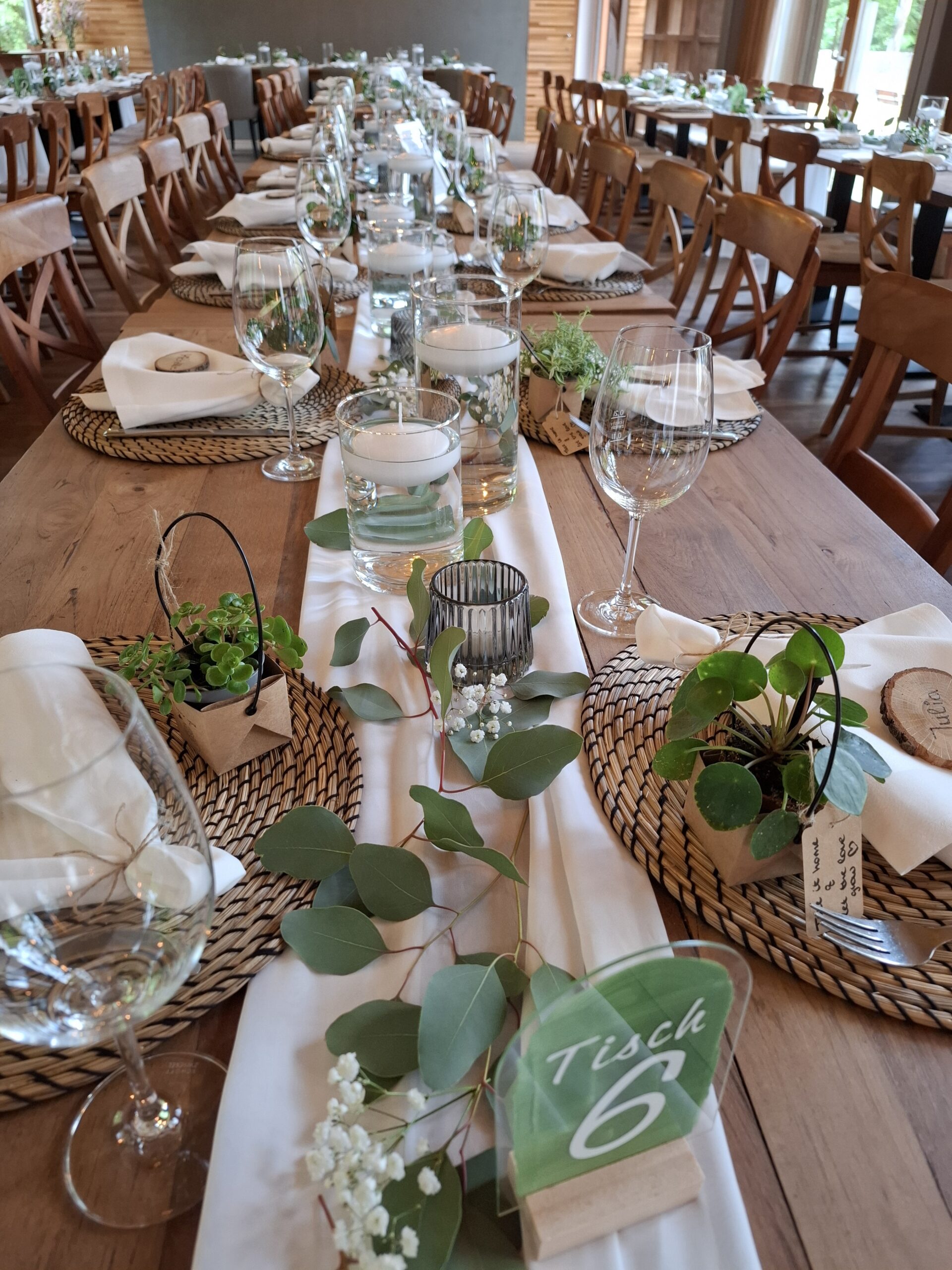 Eukalyptus/Olive und Schleierkraut lose als Ranke gelegt.