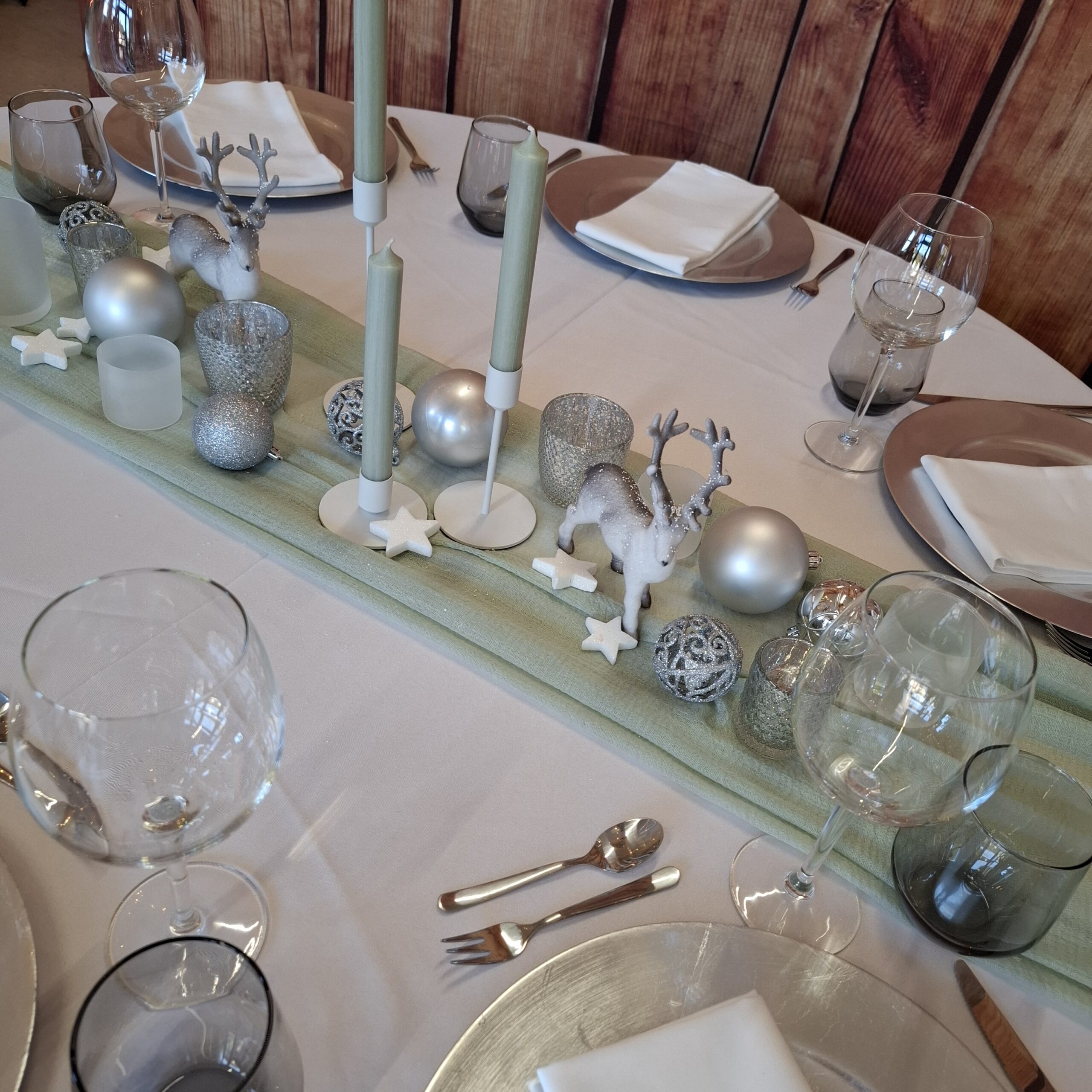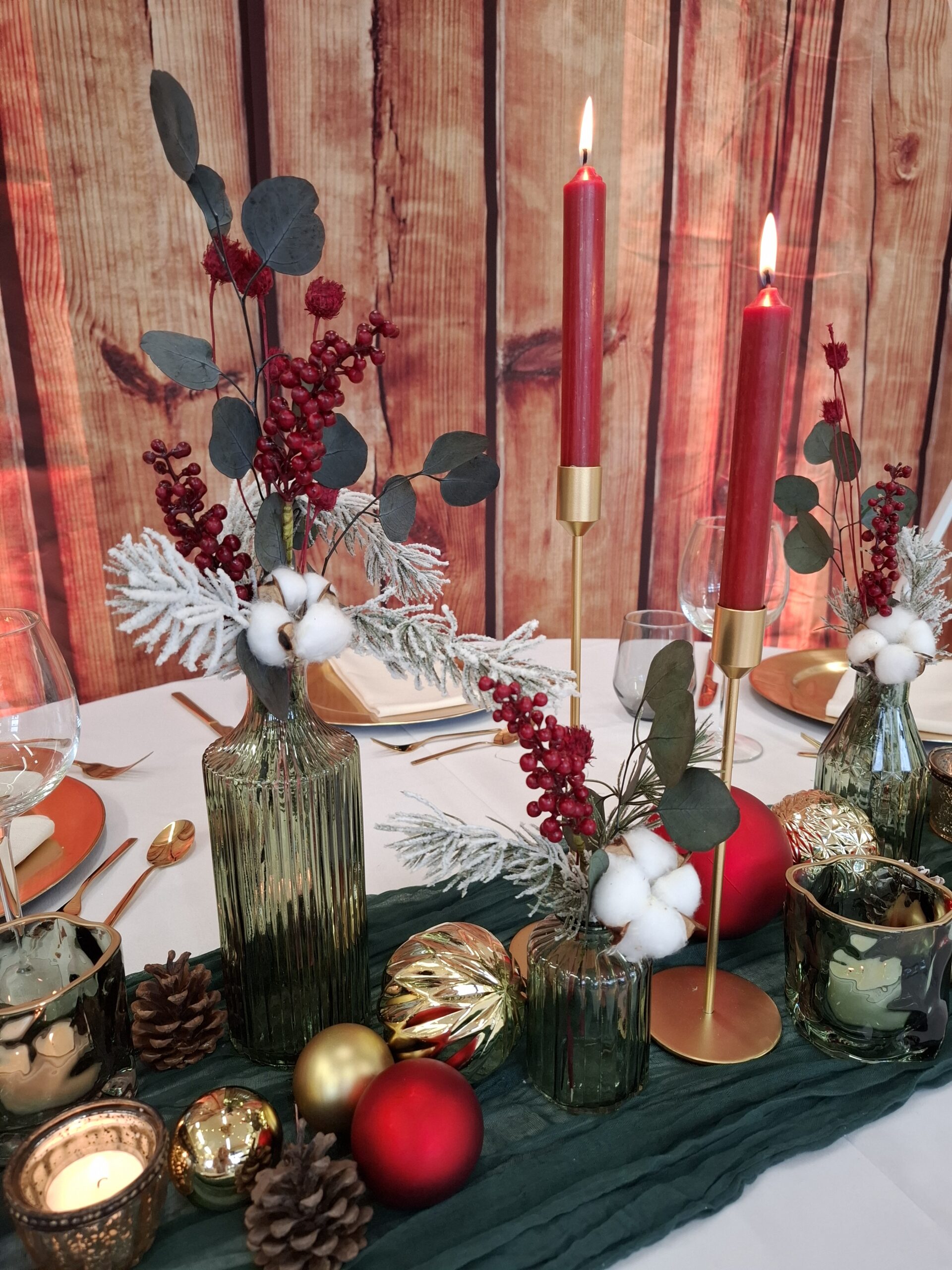 – Optional inkl. Vasen Floristik – bestehend aus Tannen, weißen Blumen/Baumwolle und optional Eukalyptus