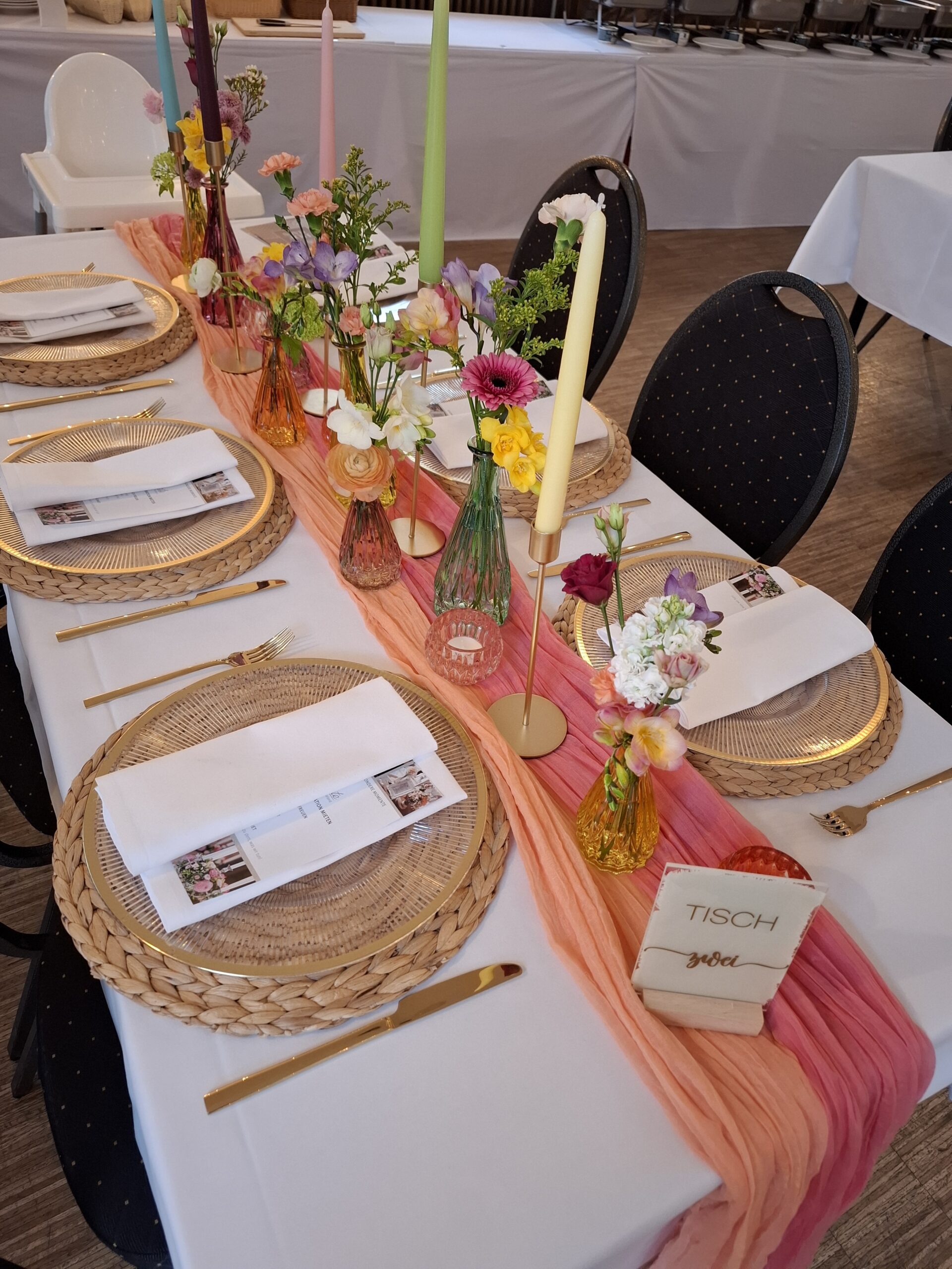 Unser vorkonfiguriertes Tischset in bunt bietet euch ein liebevoll zusammengestelltes Dekokonzept für 6-8 Personen